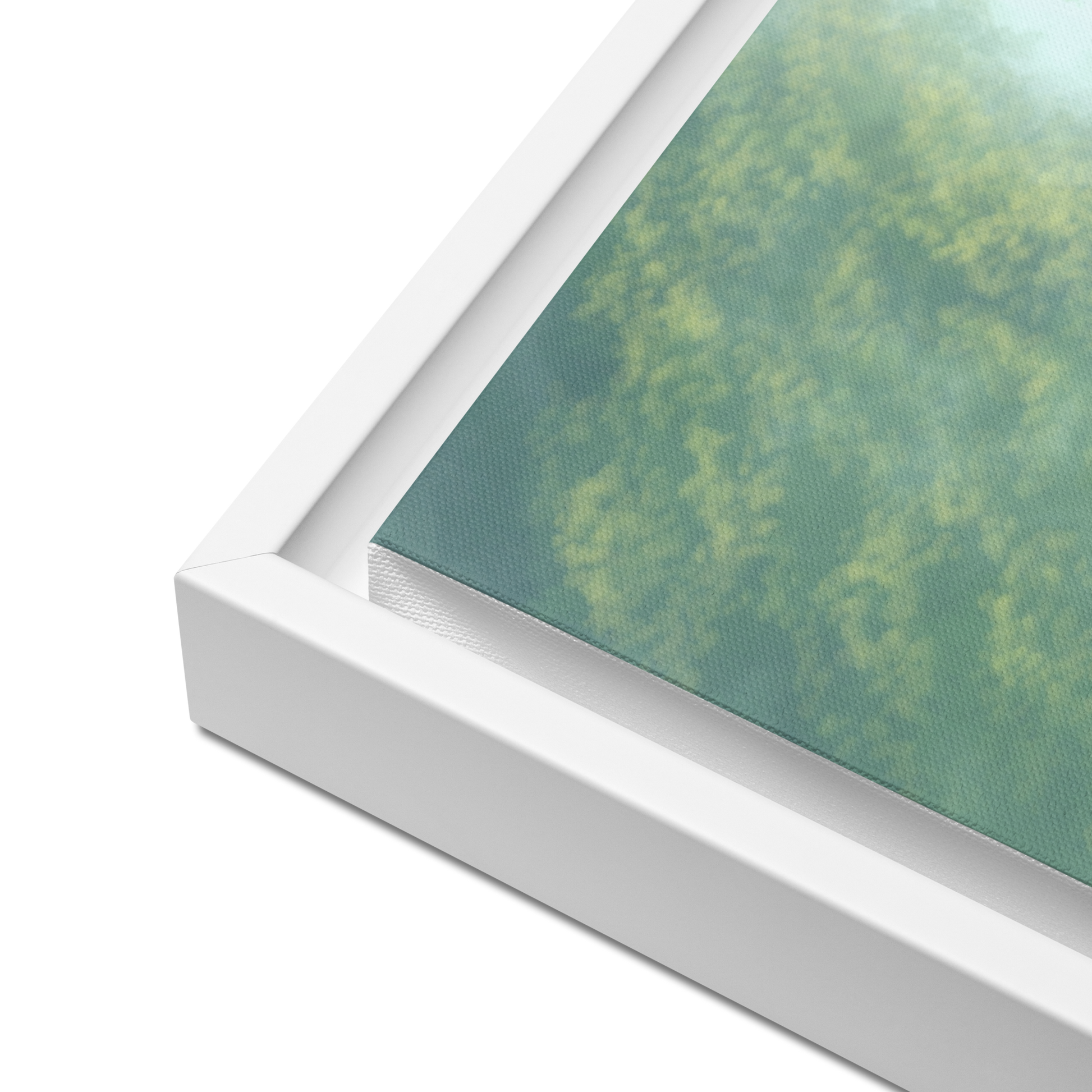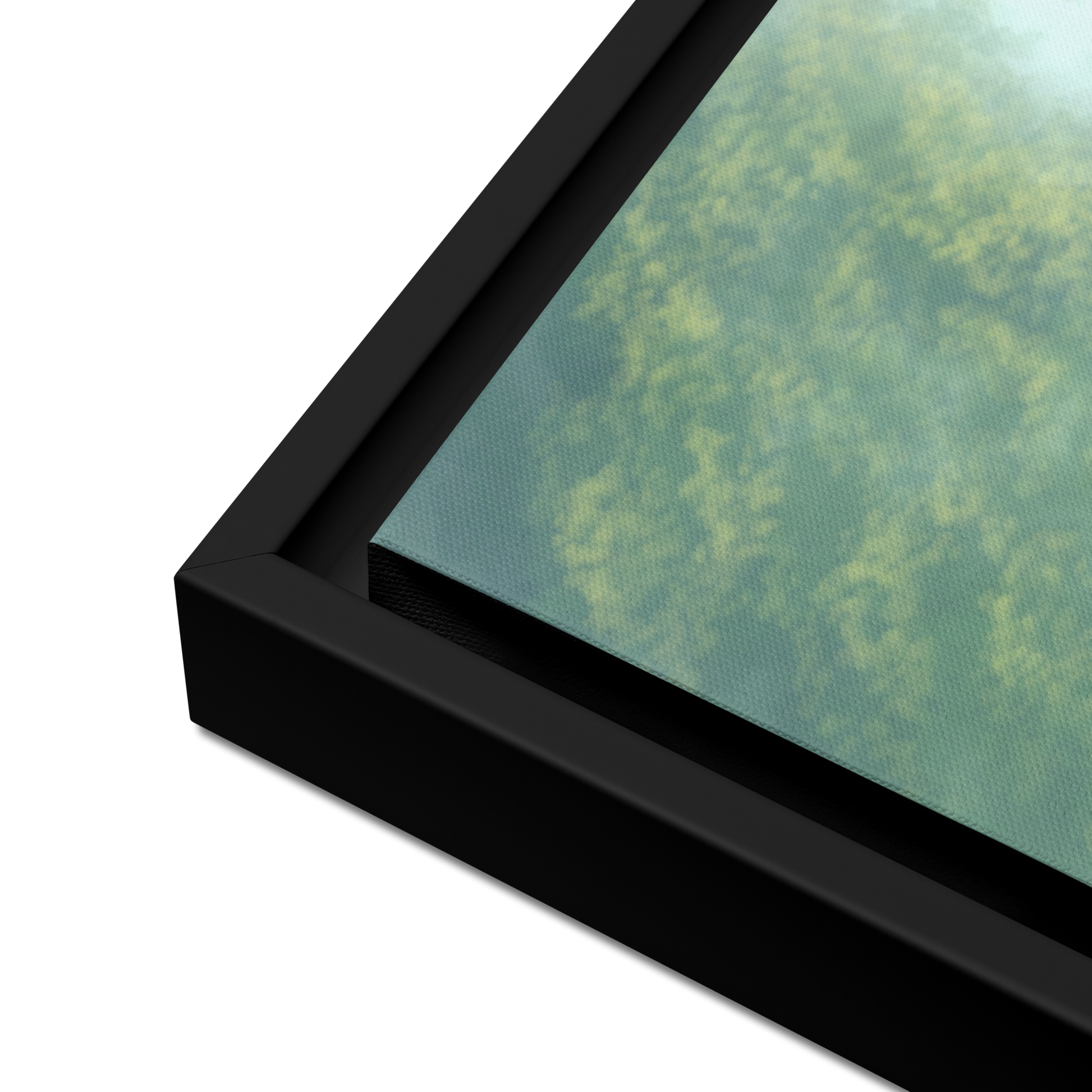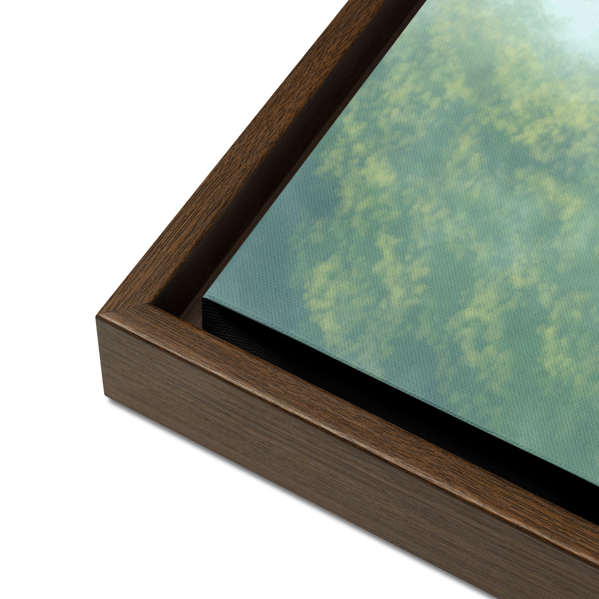 - The framed canvases with brown and black frames have a black inside around the canvas, and the canvases with white frames have a white inside around the canvas.