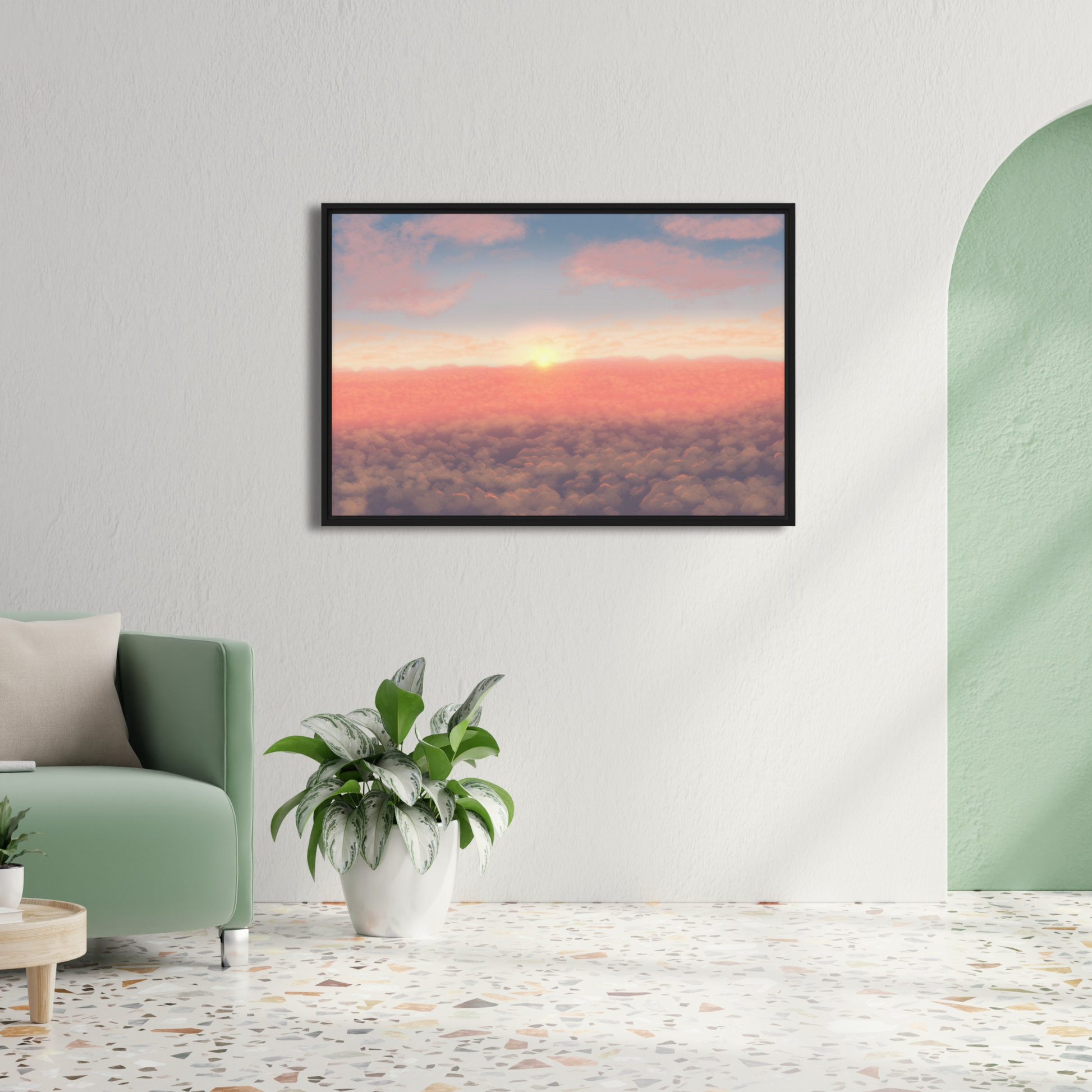 "Sunrise Above The Clouds" Painting Framed Canvas Print
